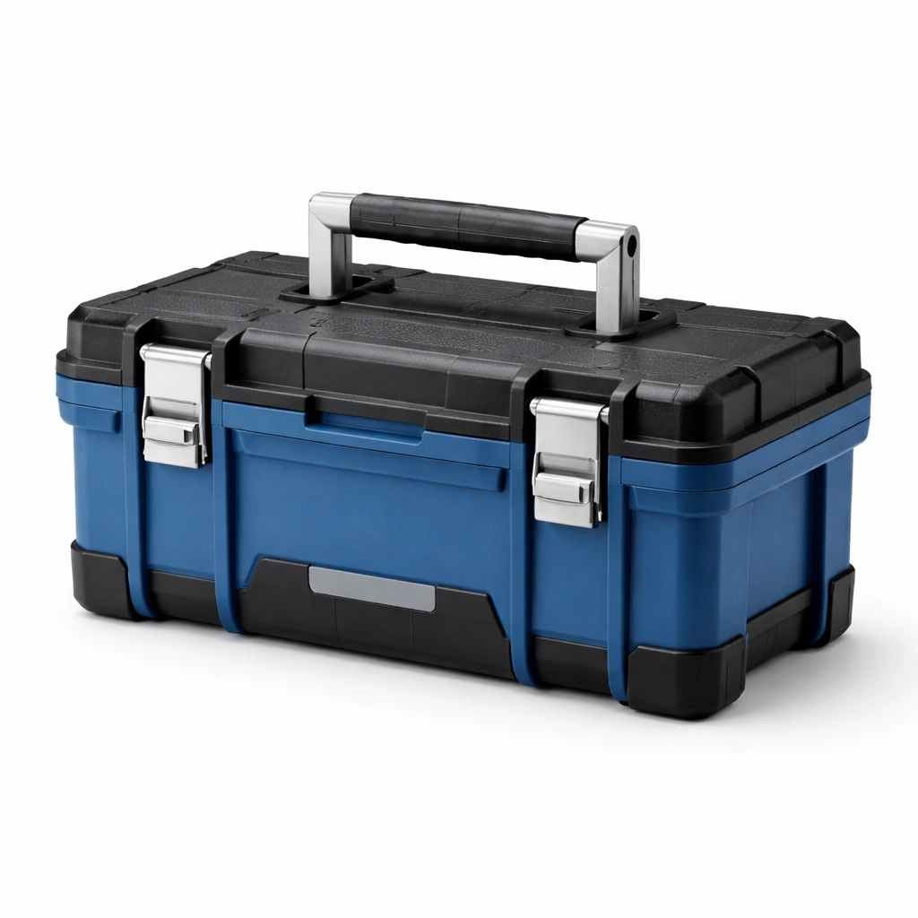 Cassetta degli attrezzi in polipropilene e acciaio blu