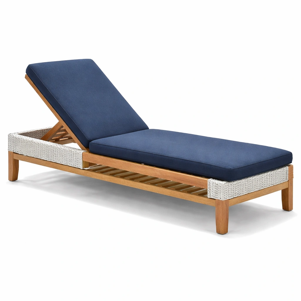 Sdraio in legno di acacia con cuscini in poliestere blu