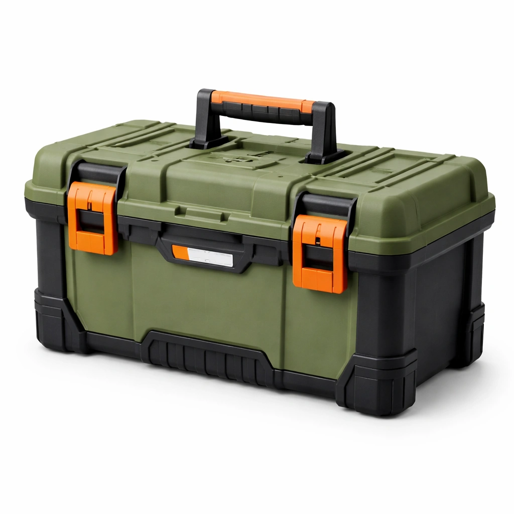 Funzione principale: Contenitore per utensili con chiavistelli di sicurezza e manico ergonomico.