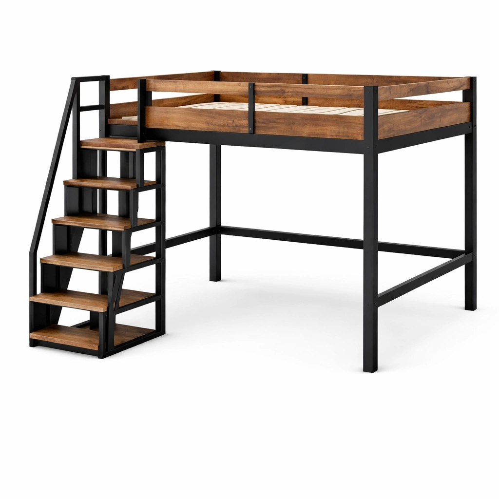 Tipo di letto: soppalco con scala laterale e gradini in legno massello.