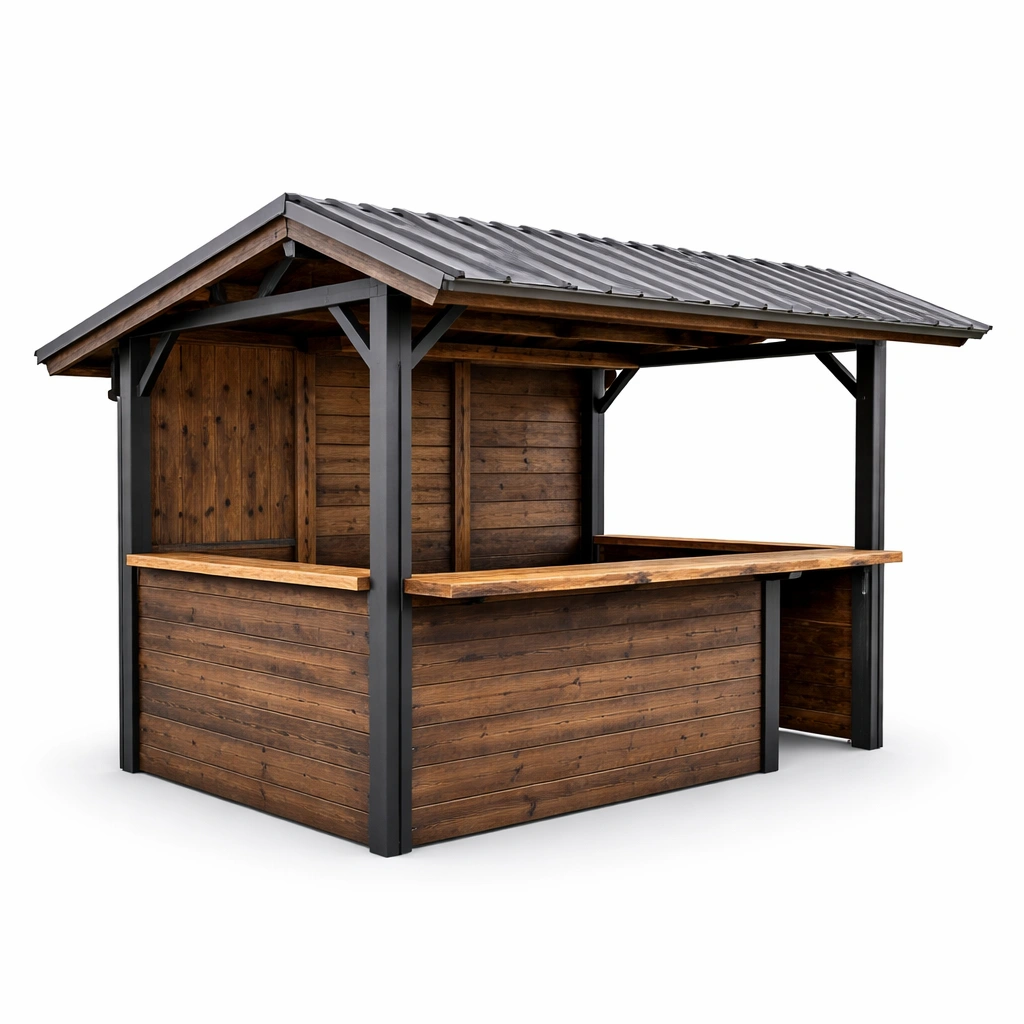 Padiglione bar in legno di pino e metallo zincato